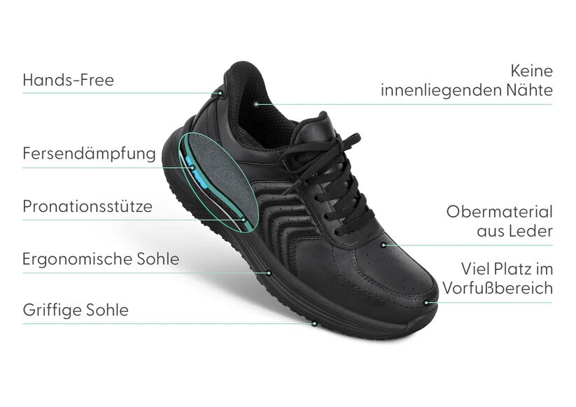 De instap sneaker, ontwikkeld voor een snelle en eenvoudige instap, nooit meer bukken en veters vastmaken.