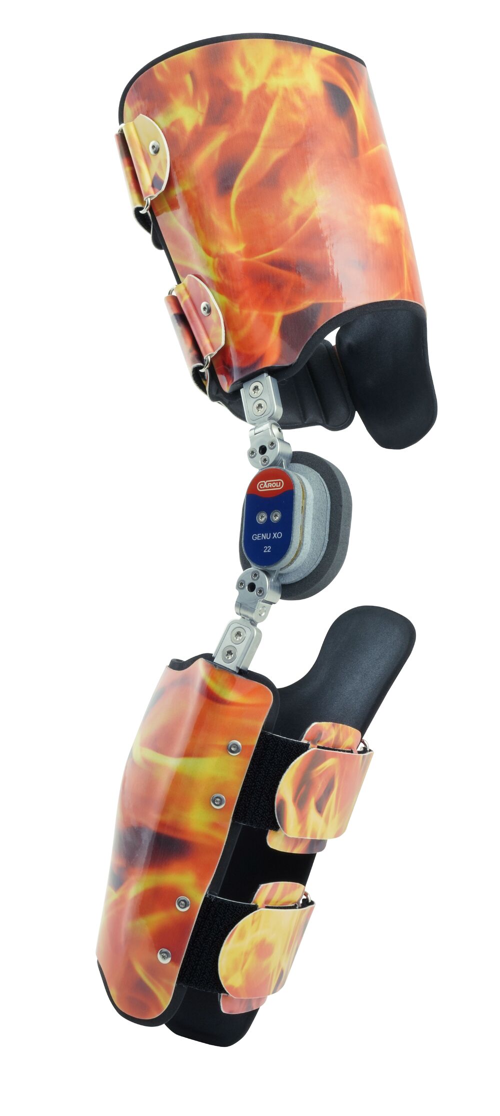 Speciaal voor de behandeling van varus/valgus-aandoeningen van het kniegewricht en voor de ontlasting en tractie van het mediale of laterale gewrichtscompartiment in het geval van gonartrose heeft Caroli de GENU XO orthese kniegewricht ontwikkeld voor de productie van individueel vervaardigde orthesen. Naast het grote aantal reeds bestaande confectieorthesen, kunnen nu ook patiënten die door een zeer uitgesproken uitlijning of andere omstandigheden niet met confectieorthesen kunnen worden behandeld, optimaal worden verzorgd. Het GENU XO orthesesysteem is verkrijgbaar in twee verschillende maten en kan worden gebruikt voor de verzorging van kinderen, adolescenten en volwassenen. De CNC-gefreesde en geharde verbindingscomponenten en de speciale lager technologie garanderen optimale loopeigenschappen met maximale stabiliteit en krachtoverbrenging. Dankzij de twee laterale wormdelen kunnen zelfs vergevorderde gewrichtsscheefstanden in de Varus/Valgus-bewegingsrichtingen continu worden gecorrigeerd. In twee uitvoeringen leverbaar; model Genu XO 18: tot 30kg belastbaar en model Genu XO 22: tot 110 kg belastbaar.