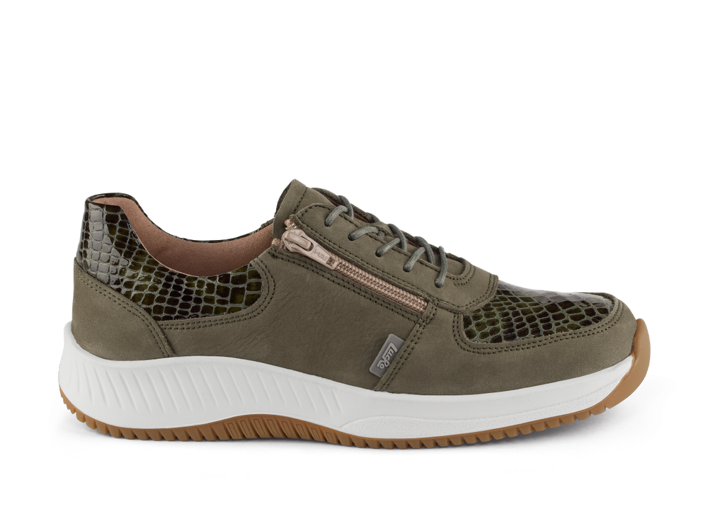 Artikel 0493000300 : nubuck/lak- mosgroen met slangenprint lak.